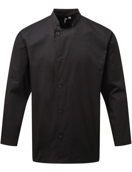 Unisex, dvojřadové zapínání na 5 knoflíků, odolné knoflíky z pryskyřice, kapsa na rukávu, pratelné na 60°, Easy Care, chemické čištění, průmyslové praní pratelné na 85°, lze sušit v sušičce při nízké teplotě